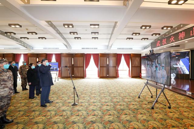 在火神山醫(yī)院指揮中心,習近平聽取醫(yī)院建設運行、患者收治、醫(yī)務人員防護保障、科研攻關等情況介紹。習近平指出,疫情發(fā)生以來,包括軍隊在內的廣大醫(yī)務工作者發(fā)揚特別能吃苦、特別能戰(zhàn)斗的精神,義無反顧奔赴湖北和武漢,毫無畏懼投入防控救治工作,日夜奮戰(zhàn),舍生忘死,不負重托,不辱使命,同時間賽跑,與病魔較量,為武漢疫情防控工作作出了重要貢獻。軍隊醫(yī)務人員牢記我軍宗旨,召之即來,來之能戰(zhàn),戰(zhàn)之能勝,為黨旗、軍旗增添了光彩。滄海橫流,方顯英雄本色。你們真正做到了救死扶傷、大愛無疆。你們是光明的使者、希望的使者,是最美的天使,是真正的英雄!黨和人民感謝你們!